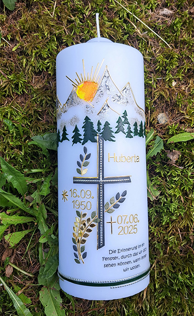 Meine mit viel Feingefühl gestalteten Erinnerungskerzen sind ein liebevolles Andenken an unvergessliche und geliebte Menschen.